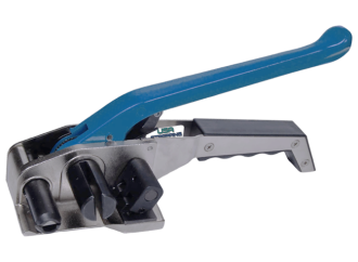 Принцип натяжения основан на храповом механизме: лента в процессе натяжения движется только в одну сторону. Оператор оборачивает упаковку лентой, один конец которой складывает вдвое и продевает получившуюся петлю в пряжку. Аналогично поступают с другим концом ленты. Обе петли цепляют на штырь. Далее вставляют ленту, прилегающую к упаковке, под прижимную часть натяжителя, а свободный конец ленты - в прорези круглых боковых валиков. Двигают ручкой натяжителя вперед-назад до нужного натяжения ленты. Затем следует опустить ручку вниз, до щелчка - оборудование обрежет ленту.